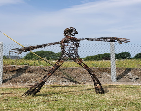 The children really enjoyed the artistic experience with the artist Paul Finch. He covered a range of aspects over a week in June 2023, he relayed his experience about life as an artist, discussed the historical and environmental element involved with the tradition of weaving. Each child in the school, got hands on experience of weaving. Each child made something and were so excited to be able to take their creative work home. The children had a lot of discussion with the artist also and as the artist was in school during Active Schools week it was decided that the children would create a large sculpture of a “Running Man”. He was christened Woody!